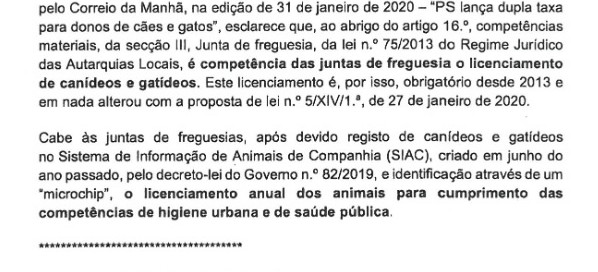Registo é feito nos médicos veterinários e licenciamento é competência das Juntas de Freguesia. De acordo com as orientações do Senhor Secretario de Estado das Autarquias Locais, publicam-se aqui os esclarecimentos a serem consultados. Em virtude da existência de interpretações que têm surgido acerca da perda de competências das juntas de freguesia por via [...]